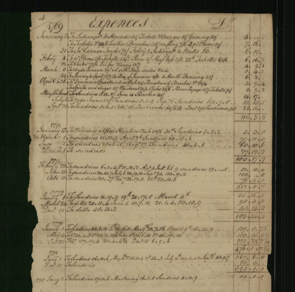 James Brice kept an account book during the years (1767-1774) that he built the grand Georgian mansion that stands at the corner of Prince George and East Streets. This account book that covers the years 1767 to 1801, now in the collection of the Maryland State Archives, is the most detailed and wide-ranging account of a house building in the latter half of the eighteenth-century. To give you a sense of its breadth and level of detail, the transcription of this account book is nearly 130 typed pages! His accounts included information about laborers who dug foundations and laid bricks, did stone work, made and carted bricks, plastered the house’s interior, and built garden walls. The book provides an unparalleled glimpse at construction methods that most architectural historians only wish they had access to during a house restoration project.