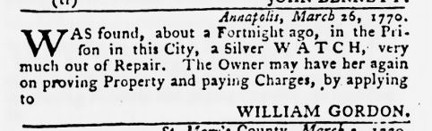 Some readers probably wondered, as I do, whether the broken timepiece found in the Annapolis prison was William Nichol’s lost watch.