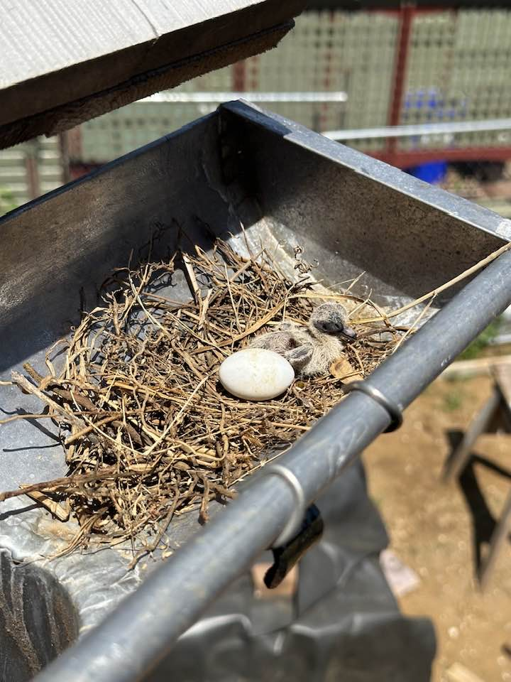 Since the dovecote is blocked, our resident mourning dove decided that the new gutter on the Brice House would be a perfect substitute.