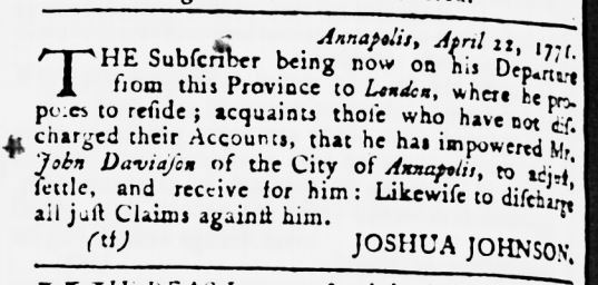 Two hundred fifty years ago, Joshua Johnson was about to embark on a bold commercial venture. The Annapolis merchant placed an ad in the Maryland Gazette to inform his customers […]
